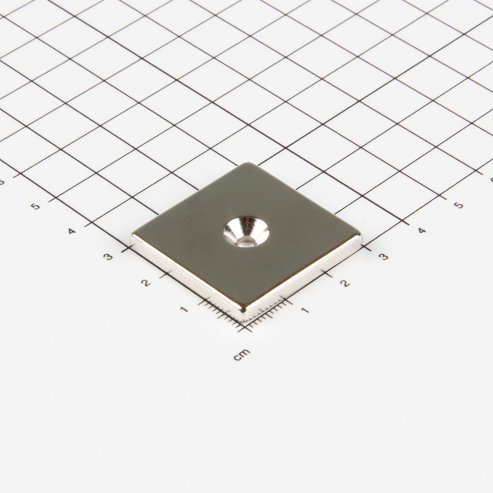 Magna-C Neodymium Block Magnet 30x30x4mm with Conical Recess for Furniture Hardware