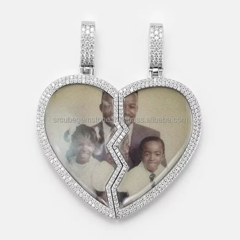 Magnet Broken Heart Custom Picture Pendant 2 Piece Magnetic Pendant With Photo Memorial Moissanite Diamond Pendant