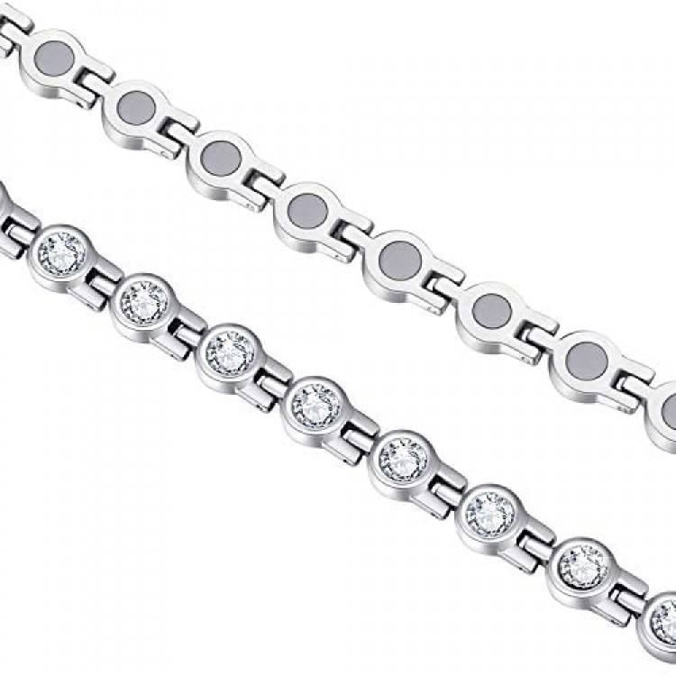 Magnetic Bracelet for Women Arthritis Pain Relief Titanium Steel Magnetic Therapy Bracelets With Gorgeous Sparkling Cubic