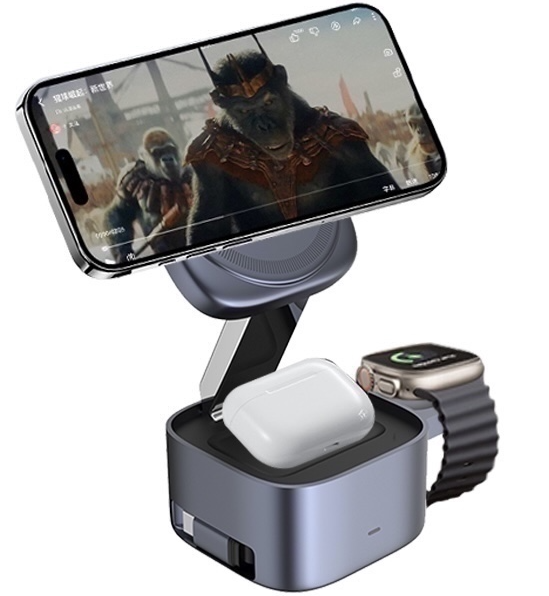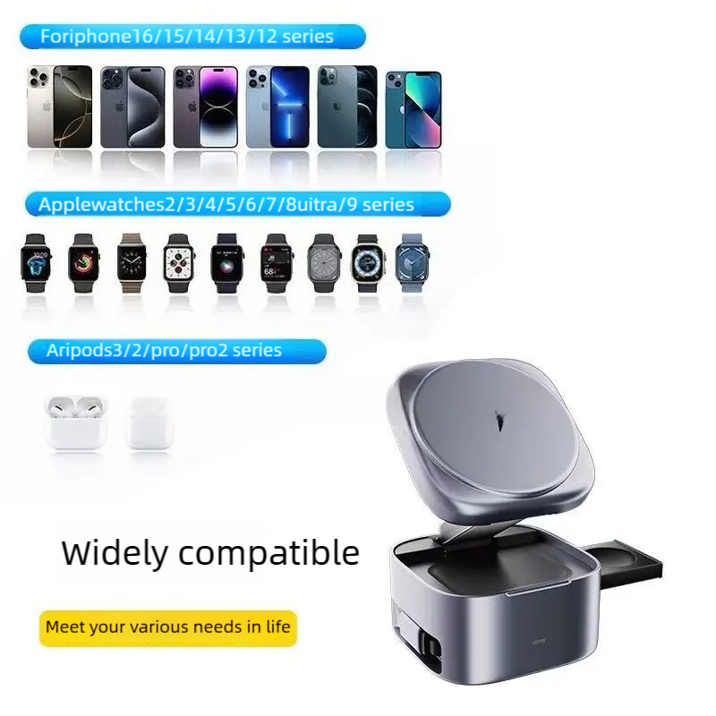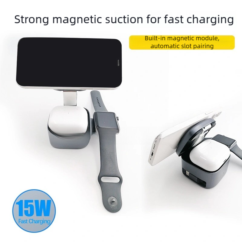 Magnetic Folding 3-in-1 Wireless Charger 15W for Phone+5W for Earbuds+2.5W for Watch Simultaneous Charge Compatibility for Apple