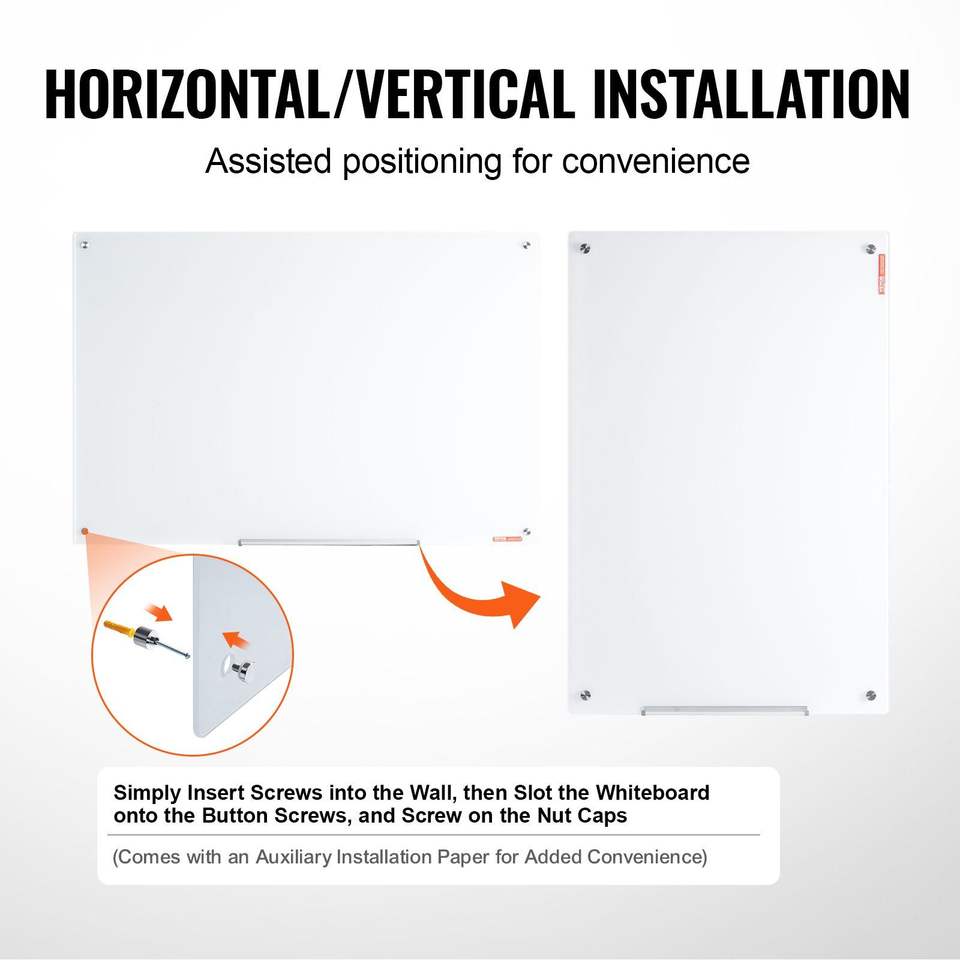 Magnetic Glass Wall-Mounted Large Whiteboard Frameless Marker Tray Eraser 2 Markers Whiteboard Dry Erase Wet Wipe Features