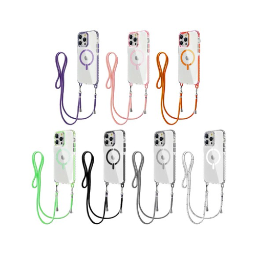 Magnetic Hard Clear Case with Neck Strap for iPhone 14 Plus Retail Packaging Mobile Phone Back Cover