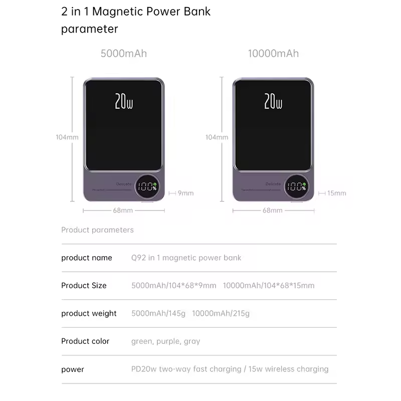 Led Display, Magnetic, Quick Charge Support, Wireless Chargingfunction