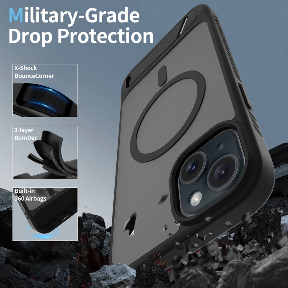 Magnetic charging cheap stand case with solid soft-touch vivid translucent matte, anti-drop shockproof design for iPhone 15 PLUS