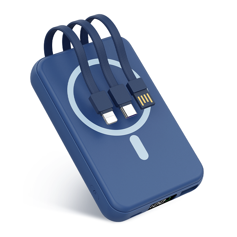 Magnetic wireless power 10000mAh portable charger 22.5W PD fast charging built-in cable LED display battery pack