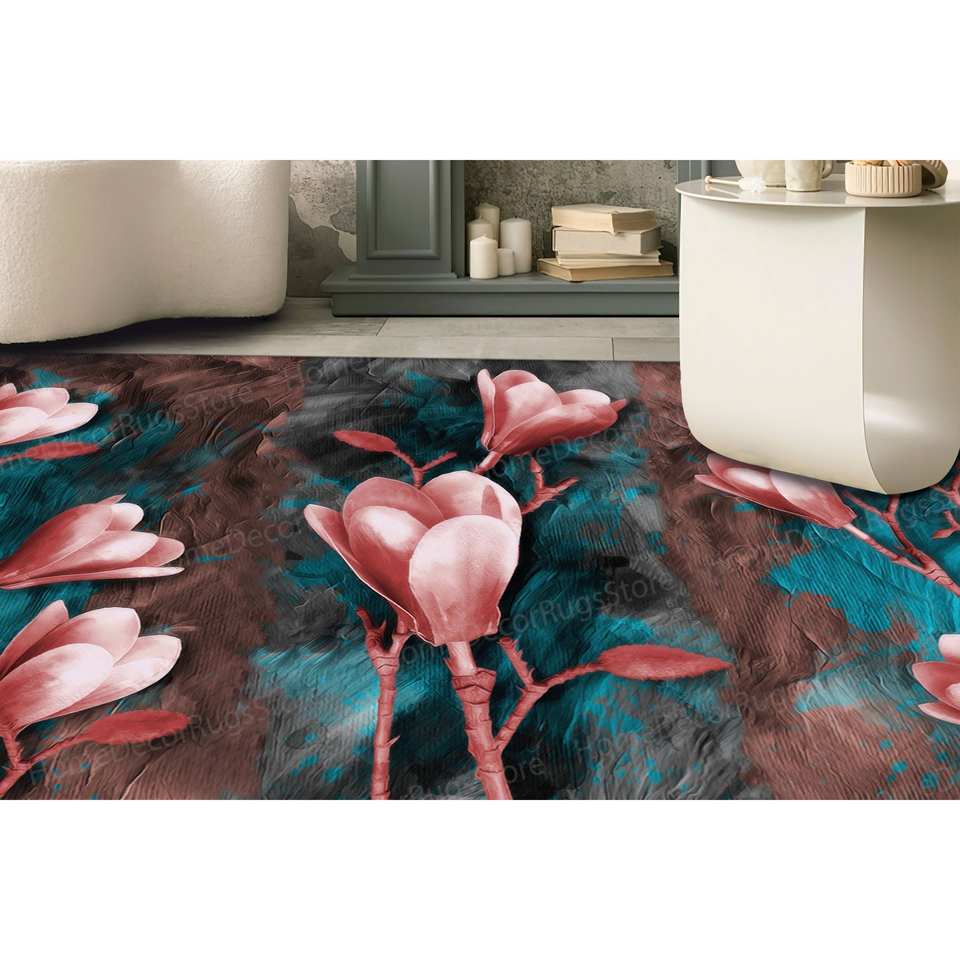 Magnolia Flowers Painting Printed Rug, Luxury Floral Accent Entry Rug,Chenille Rug