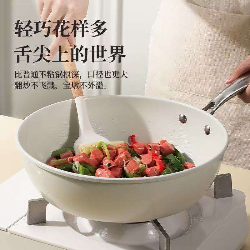 Maifan Stone Shell Porcelain Fry Pan White Nonstick Round Kitchen Cookware For Household Use