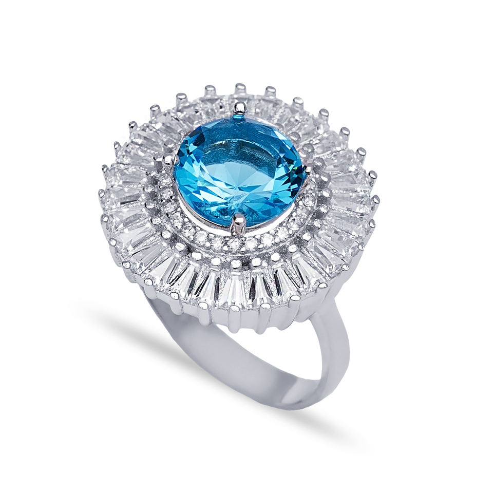 Main Aquamarine CZ Stone Baguette Clear Zircon Cluster Ring Wholesale Turkish 925 Sterling Silver Jewelry Fine Jewellery
