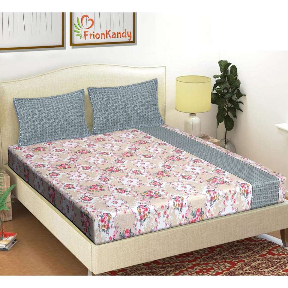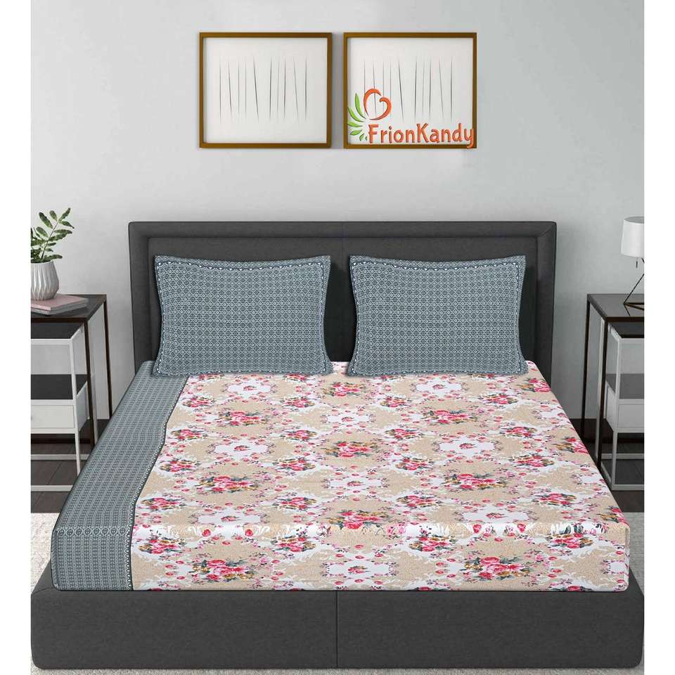 Majestic Grey Floral Print 240 TC Cotton Double Bed Sheet with 2 Pillow Covers SHKV1030 Sheet & Pillowcase Sets