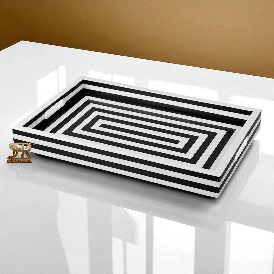 functional design:Flat surface for serving, Strong wood resin build, Easy to carry by hand, Raised edges prevent spills, Lightweight yet sturdy, Great for snacks or drinks, Works as decor base too, Smooth resin inlay top, Easy to clean surface, Stable on flat tables, Organizer Tray, Vanity Tray