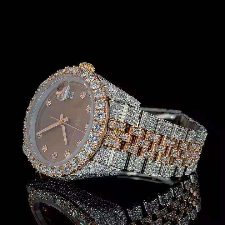 Majestic Quartz Watch With Iced Out Moissanite Stones Crafted For Premium Quality Beauty Luxury And Flawless Precision