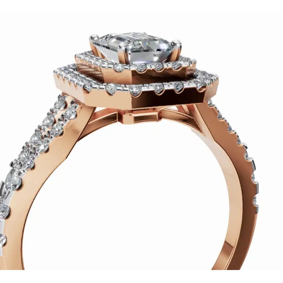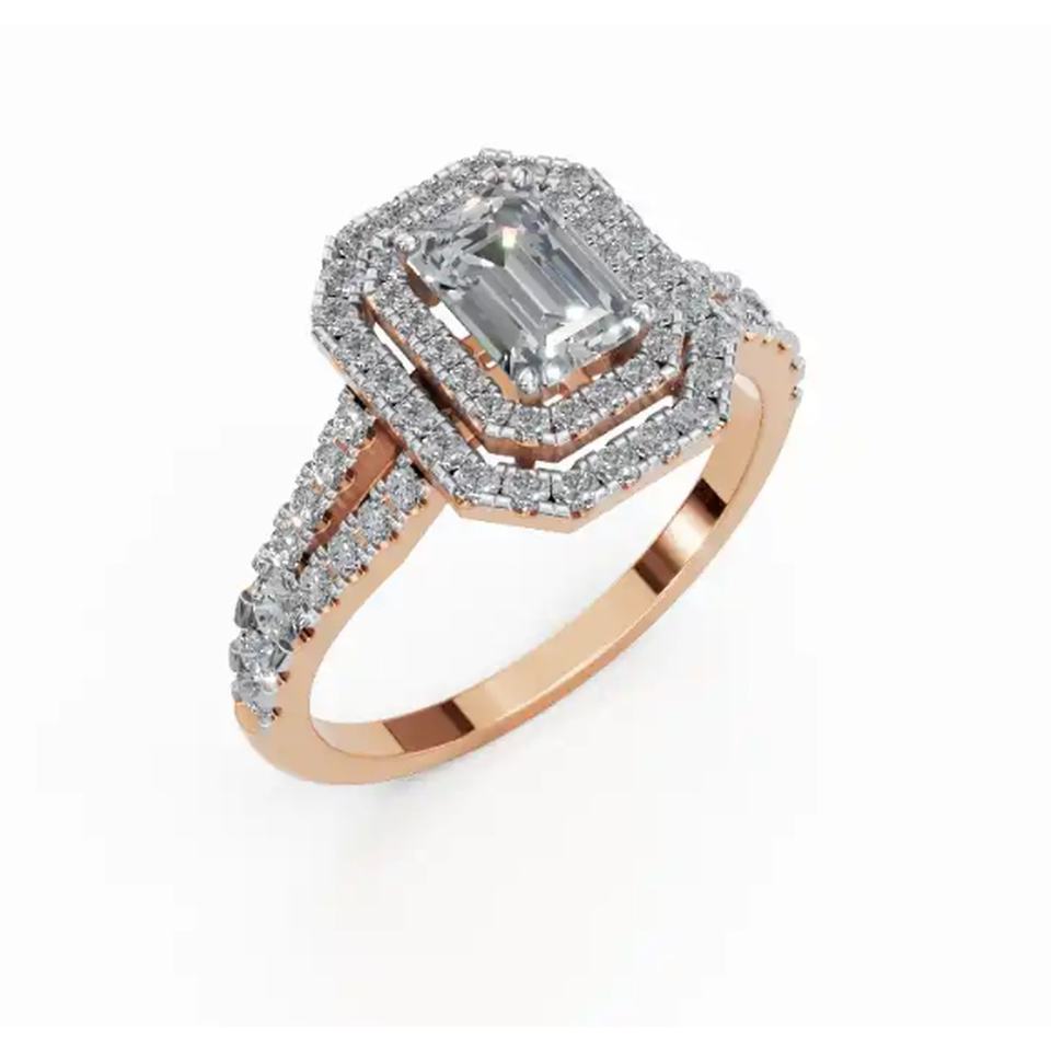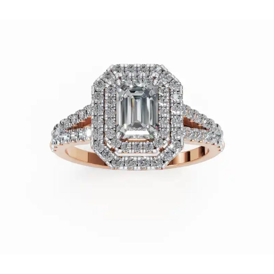 Majestic Royal Sovereign Emerald Halo Lab Grown Diamond Ring 1.351 Ct 9 KT 14 KT 18 KT Gold Fine Jewelry Wholesale OEM Export