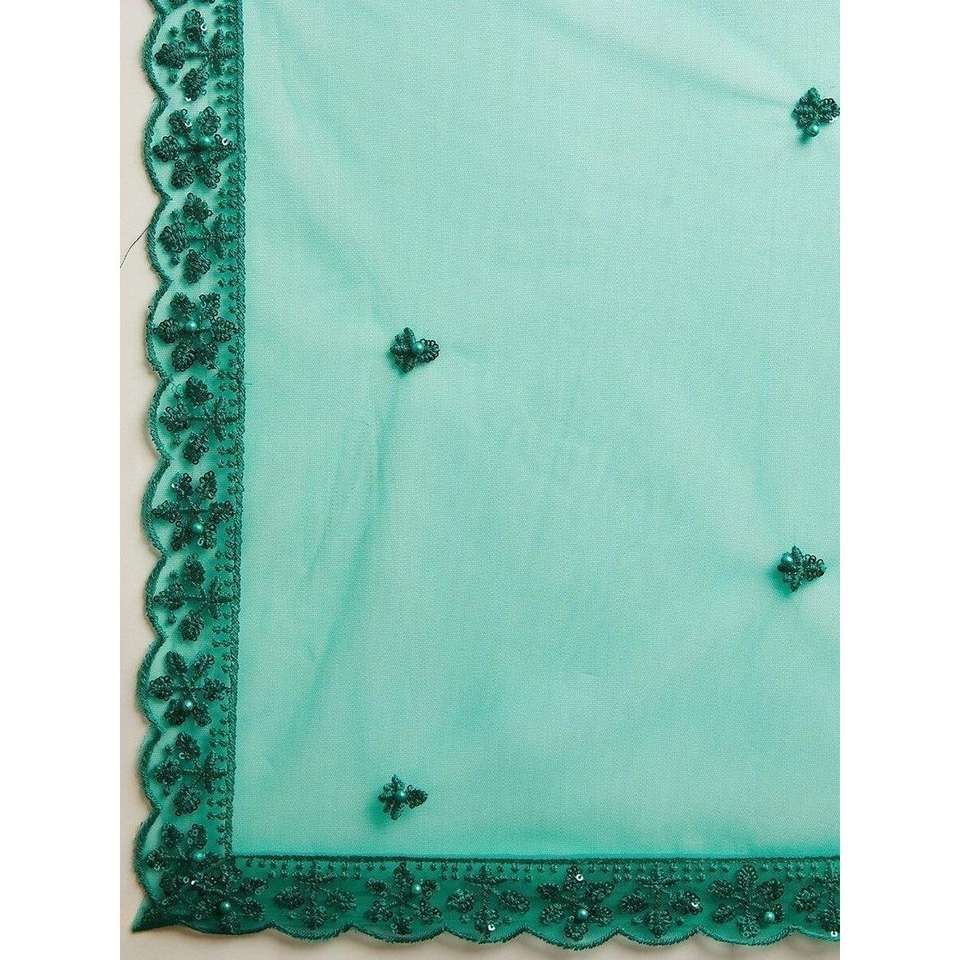 Majestic Teal Green Sequin Net Mehandi Wear Lehenga Choli With Dupatta