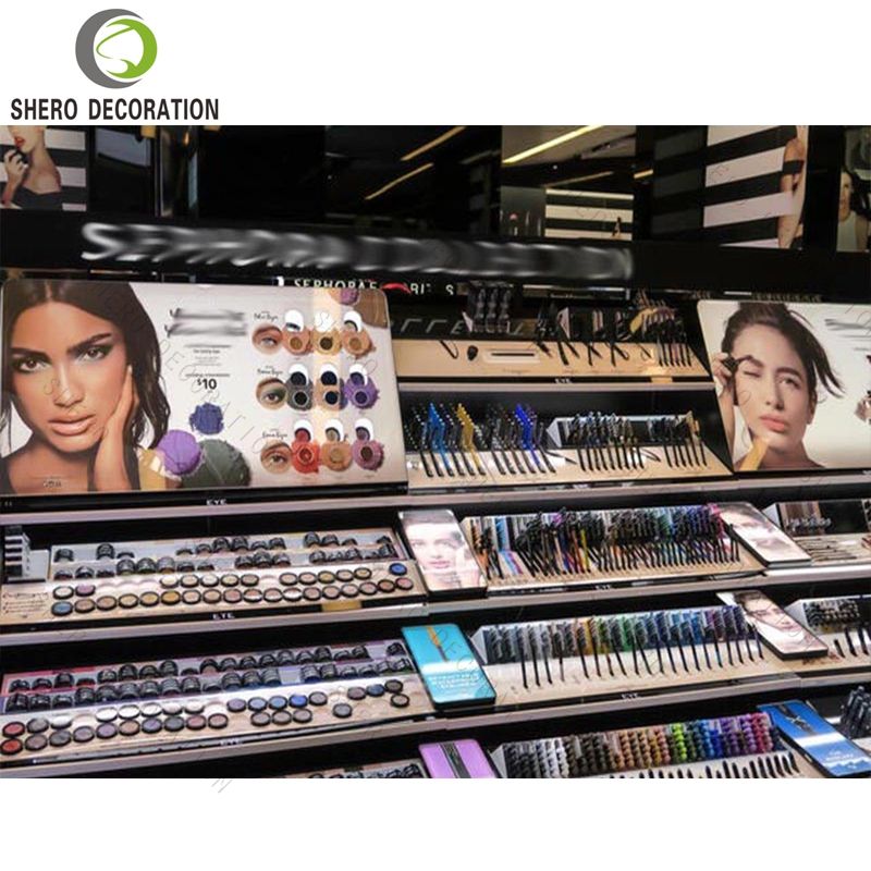 Make Up Shop Interior Design Cosmetic Wooden Display Showcase And Cabinet cosmetic stand