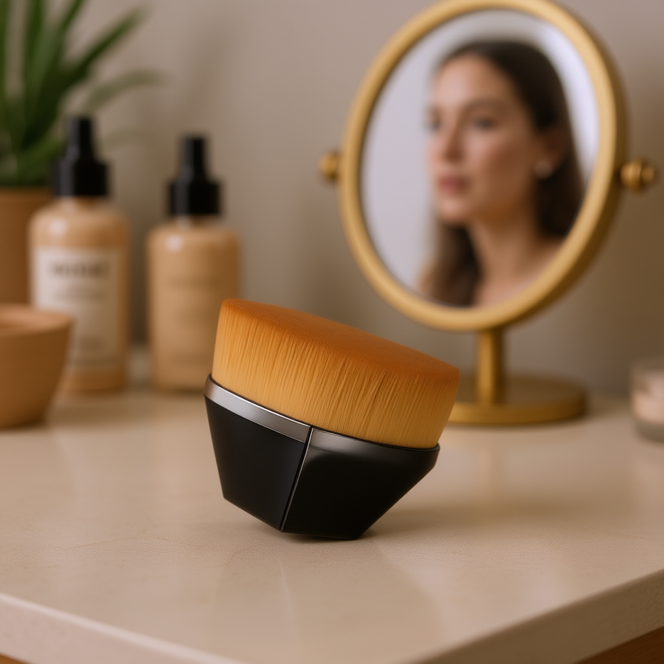 Flat Makeup Brush for Liquid Foundation, Synthetic Hair with Thickened Aluminum Ferrule, Model COS04 by EGTMA, Single Beauty Too