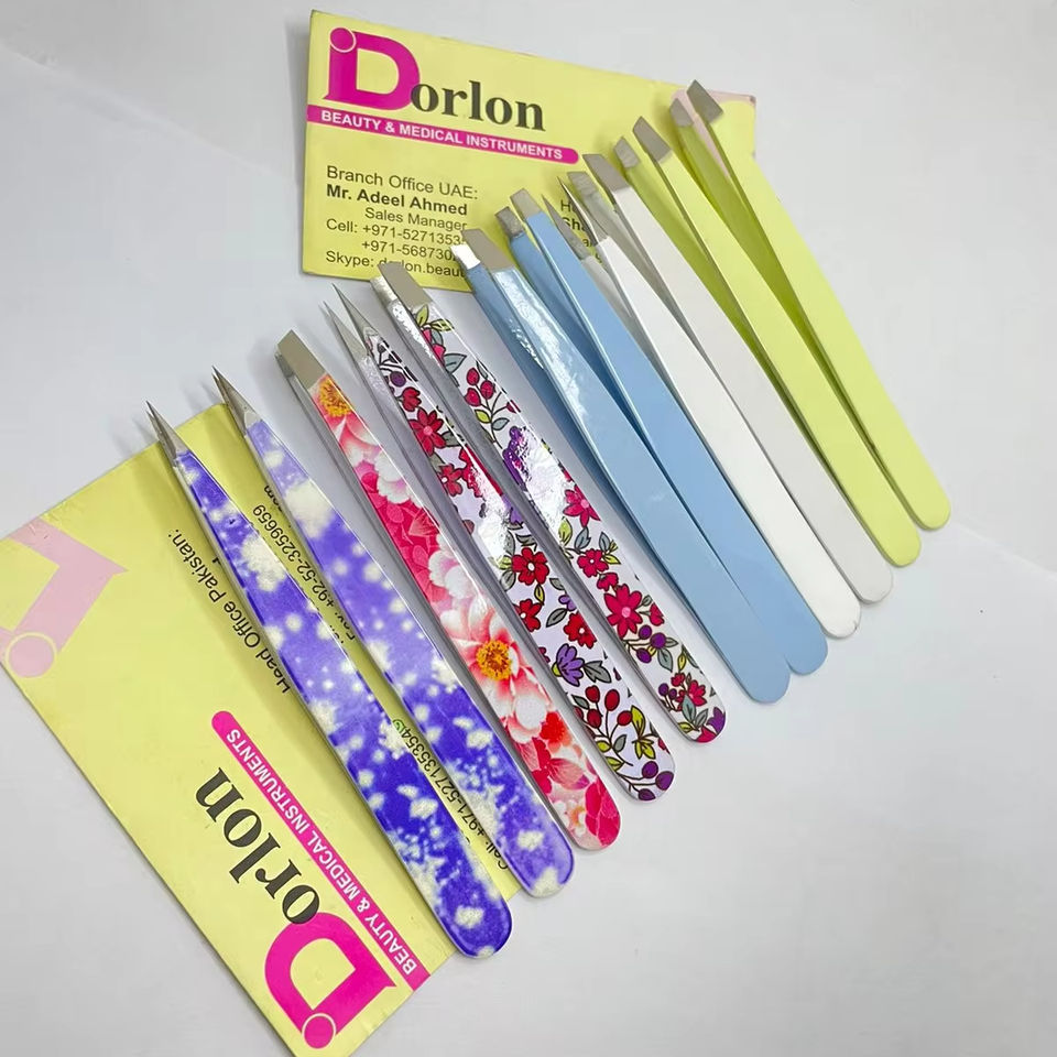 Makeup Eyebrow Tweezer Color Coated & Paper Coated Tweezers Hair Plucking Slanted Pointed Eyebrows Tweezers Made in Pakistan