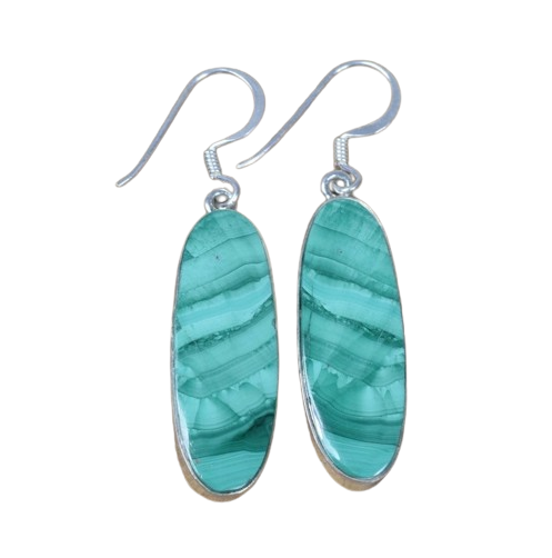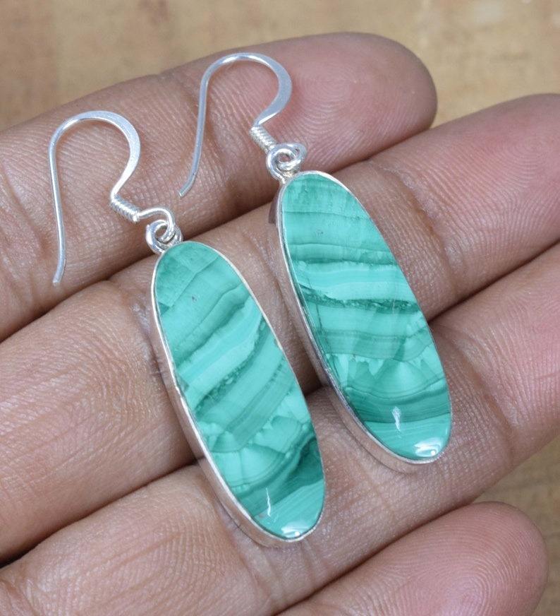 Malachite 925 Sterling Silver Hook Earring Handmade Green Gemstone Jewelry for April Birthstone Wedding or Christmas Gift