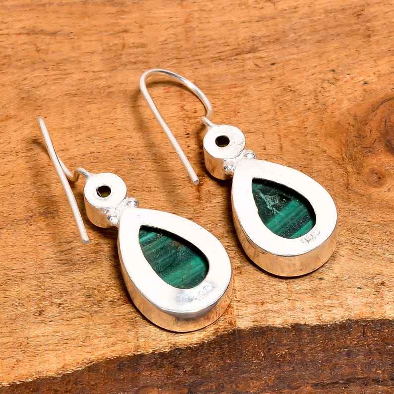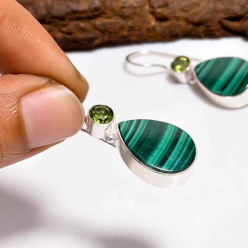 Malachite And Peridot Earrings Sterling Silver Teardrop Earrings Green Gemstone Dangle Handmade Boho Gift For Her