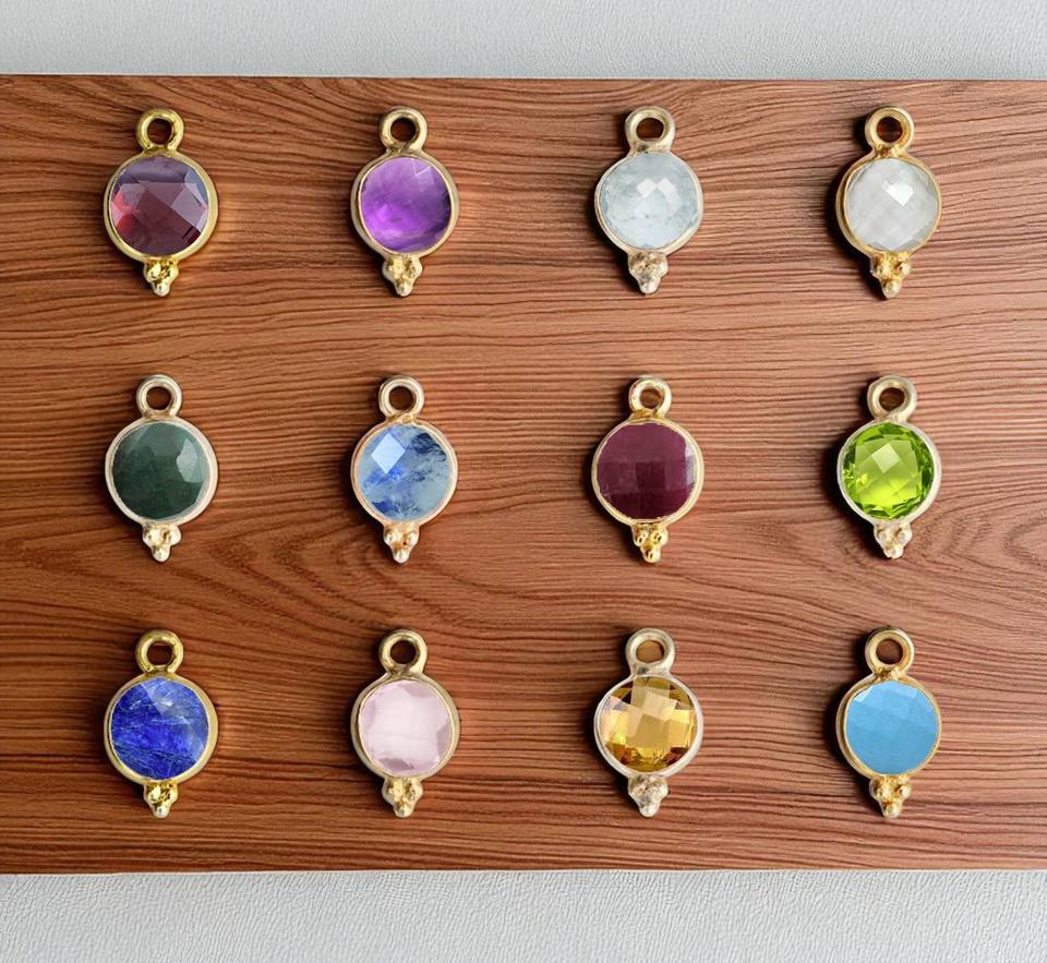 Product Name:Gemstone 925 Sterling Silver Gold Plated 6mm Round Shape Bezel Pendant