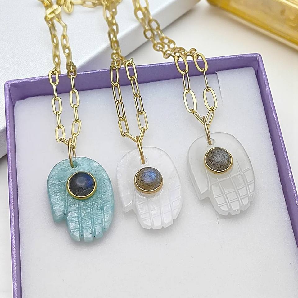 Malachite Gold Plated Protection Jewelry Hamsa Hand Necklace Indian Wholesale Jewelry Bulk Supplier Handmade Malachite Jewelry