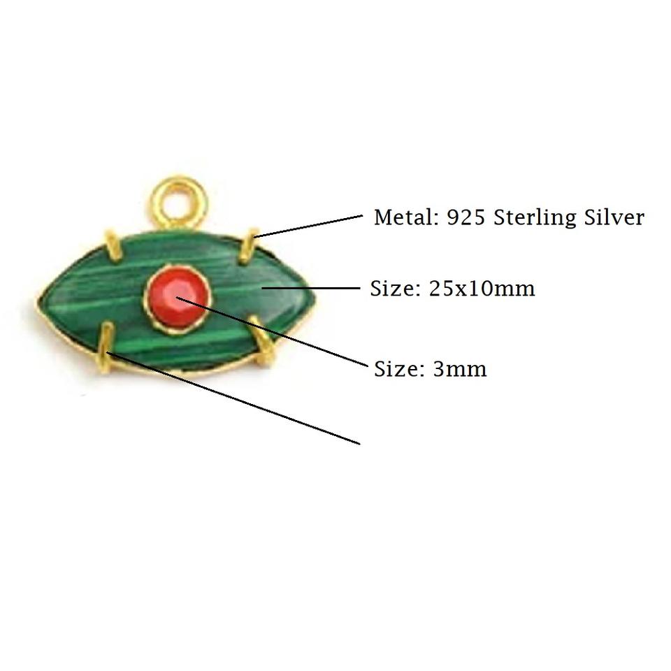 Malachite Large Pendant 25x10mm Marquise Shape 925 Sterling Silver Gold Vermeil Prong Set Necklace Pendant Stone Marquise Charms