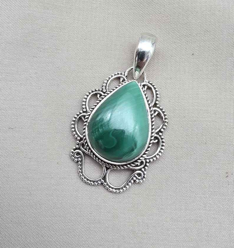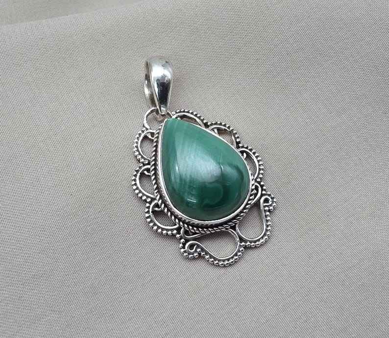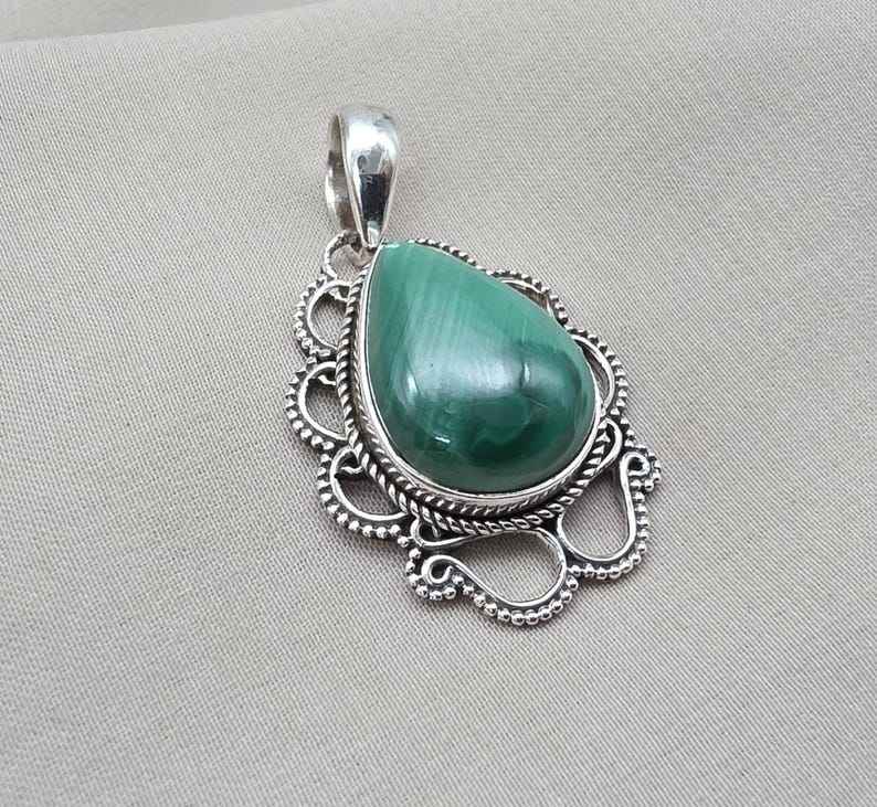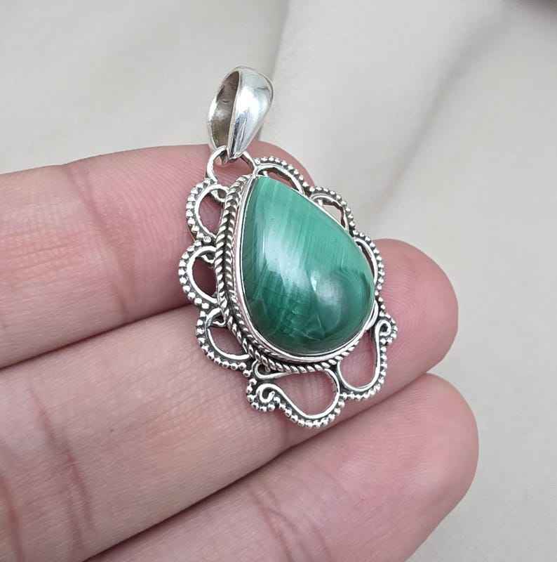 Malachite Pendant 925 Sterling Silver Natural Gemstone Jewelry Gift For Women Elegant Unique Handmade Necklace