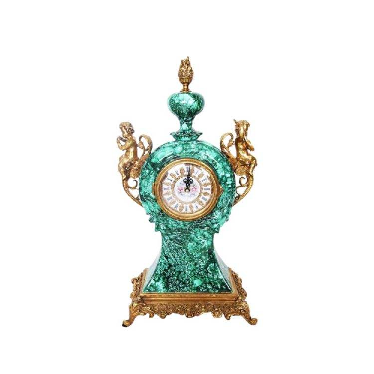 Malachite Table Clock Vintage Retro Design Wall Decorative Alarm Clock for Home Sale Handmade Antique Luxury