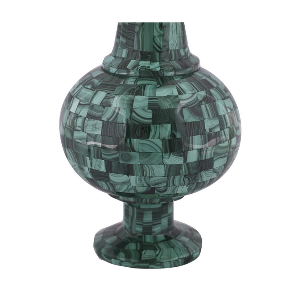 Malachite Table Flower Pot Semi-Precious Gemstone Accent Home Living Indoor Electronic Desktop Block Steel Garden Accent