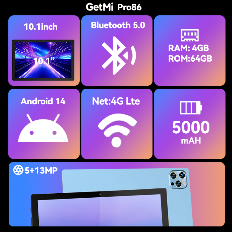 Malaysia In-Stock GetMi Pro 86 Kids Tablet Latest New 10.1 Inch WiFi Tablet Computers for Working or Learning