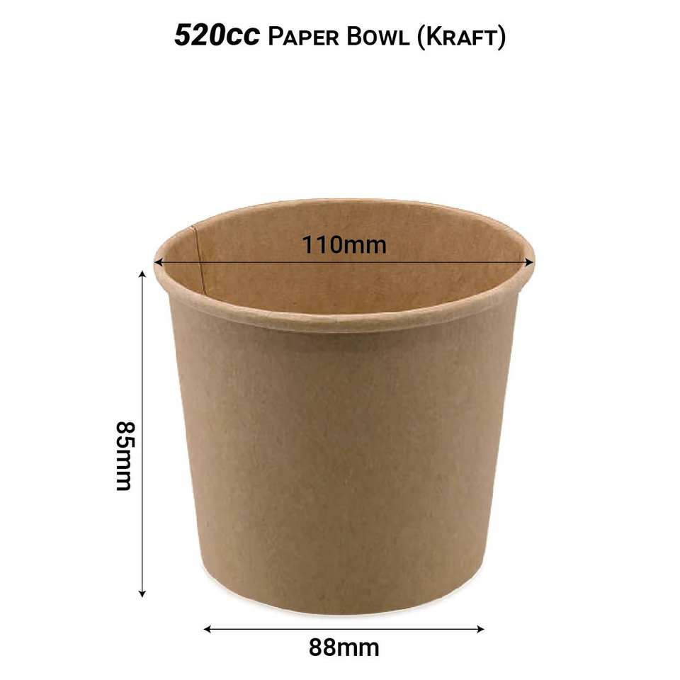 Malaysia Leading Wholesales Supplier TBH Brand Disposable Microwave Safe 520CC Brown Kraft Paper Bowl 100% Biodegradable PE