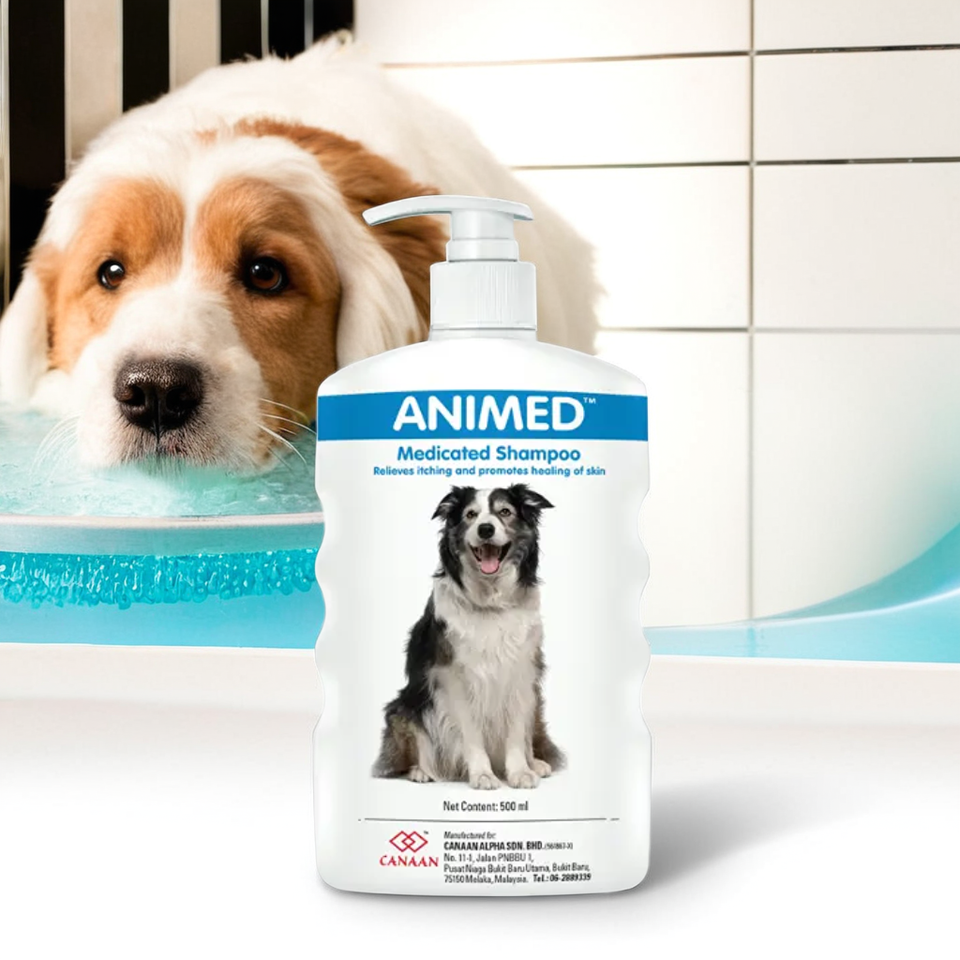 Malaysia-Made Animed Medicated Dog Shampoo Natural Gentle Formula for Healthy Coat