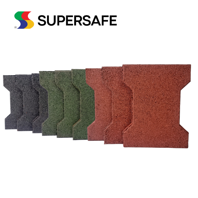 Malaysia Manufacturer Supplier High Impact Resilience Easy Installation Dogbone Rubber Tiles Supersafe Pavers Flooring