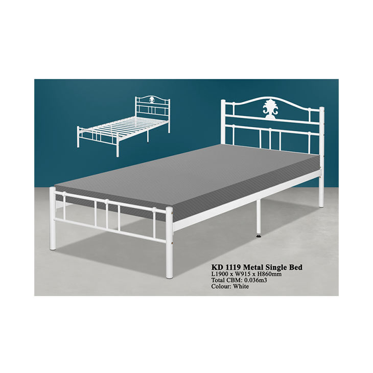 Malaysia Manufacturer's Modern White Single Bed Frame KD-1119 Steel Bunk Bedroom Furniture for Home & Hotel Apartments