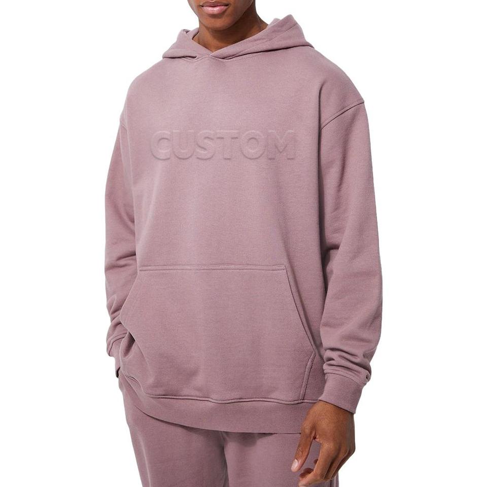 Male And Femalev3d embossed hoodies 100% cotton contrast stitch fishing raw edge hoodie no string