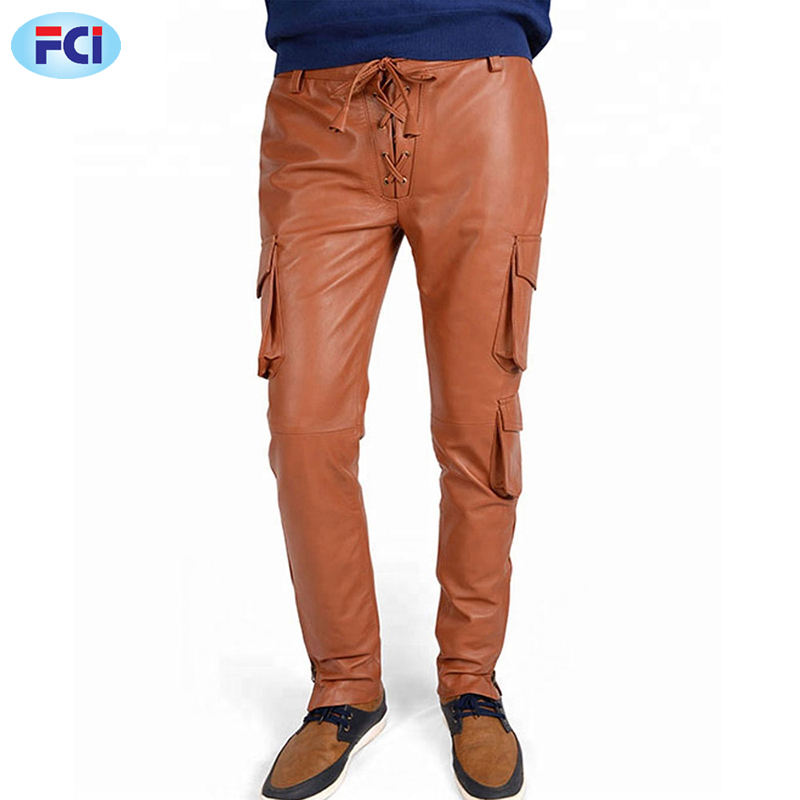 Male Genuine Leather Pants Plus Size Straight Men Sheepskin Regular Full Length Leather Pants
