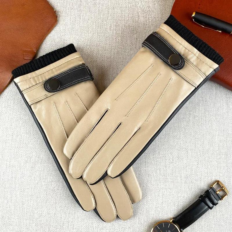 Male Real Leather Gloves Autumn Winter Thermal Plushed Lining Driving Business Sheepskin Men Gloves Touchscreen