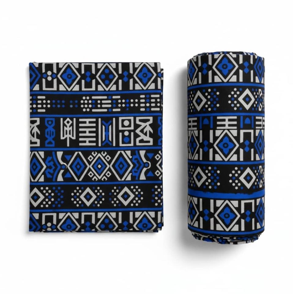 Mali Womens Bazin Riche Kaftan Dress Hand-Embroidered Deep Blue with Matching Headwrap West African Wedding Attire