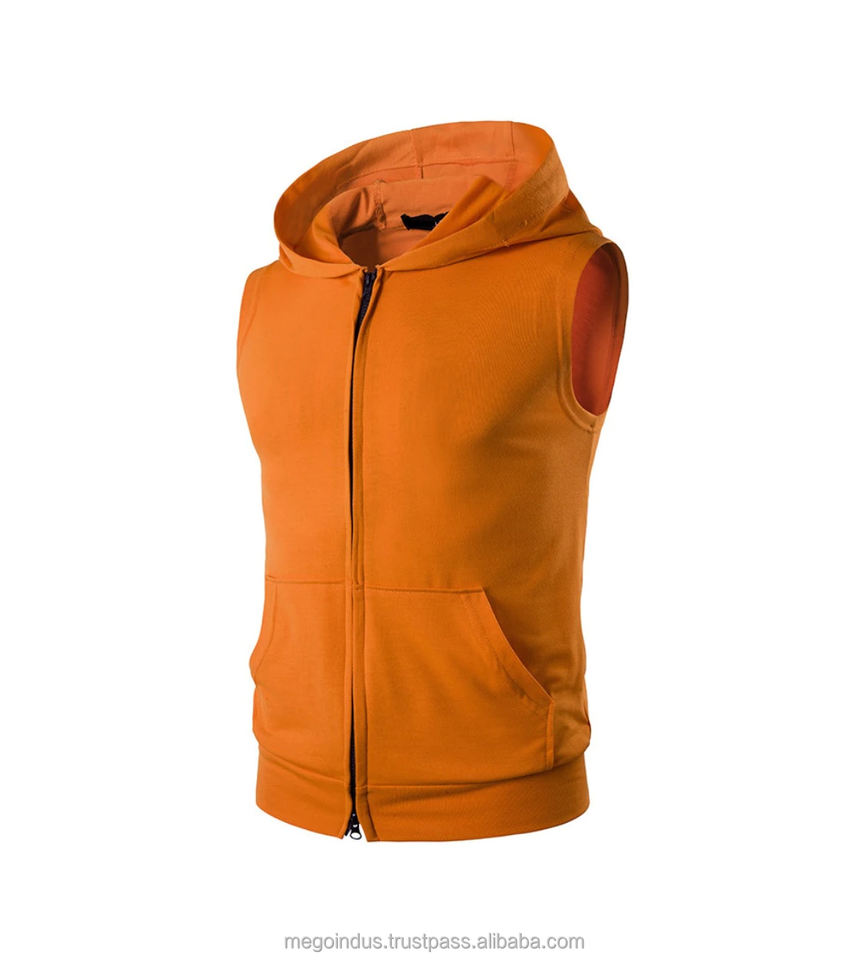 Man Clothing Fall Plus Sizes Sleeveless Hooded Vest Sweatshirts Mens Zipper Closure Hoodie Jackets with Pockets