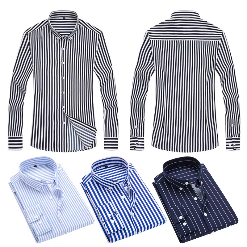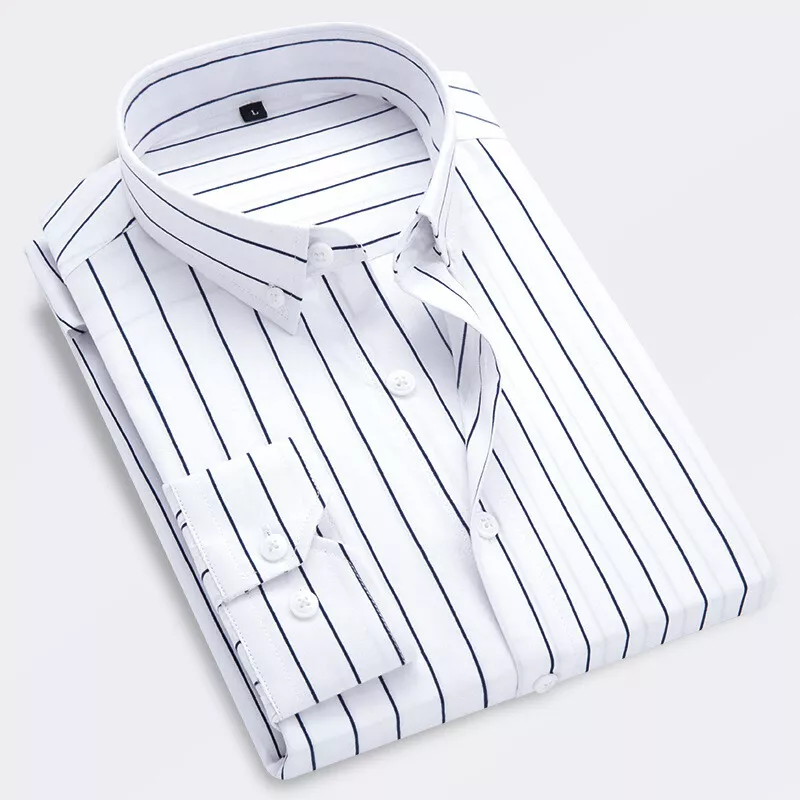 Man Shirt Men's Shirts Men's Striped Long Sleeve Dress Shirt Slim Button up Tops for Office Dinner Party