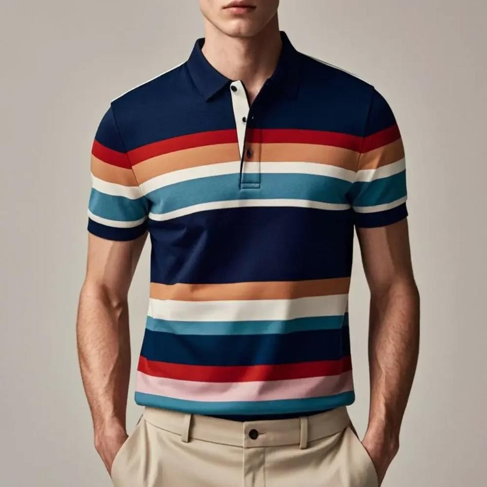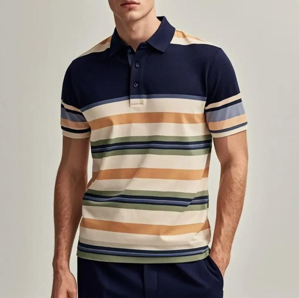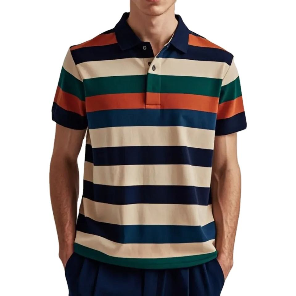 Man With Collar Tee Shirts Slim Fit Polo T Shirt for Men Orange Top No Logo Streetwear Cotton Clothing Chic Comfortable Basic