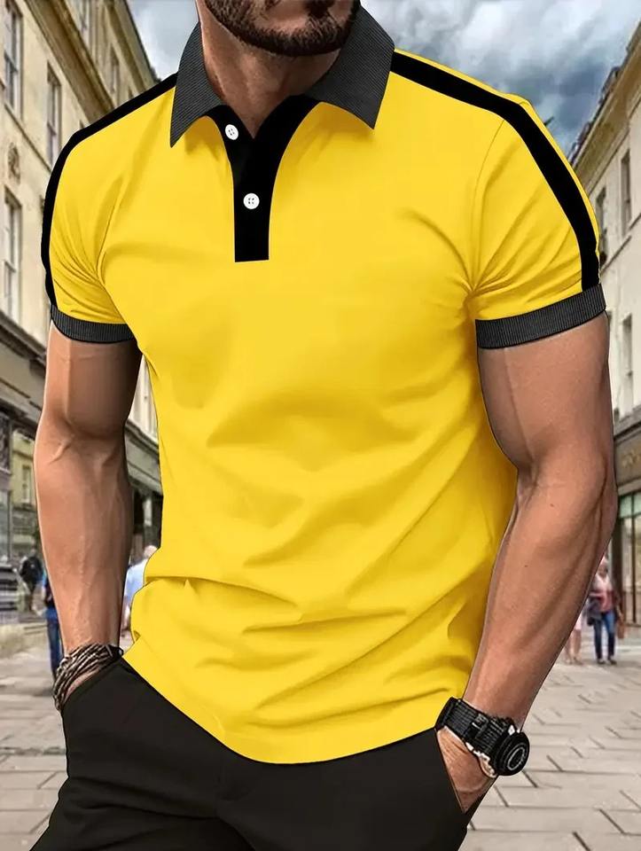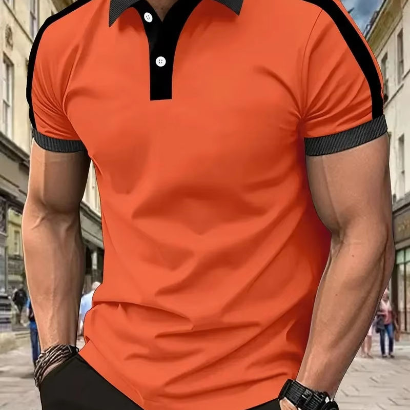 Man With Collar Tee Shirts Slim Fit Polo T Shirt for Men Orange Top No Logo Streetwear Cotton Clothing Chic Comfortable Basic