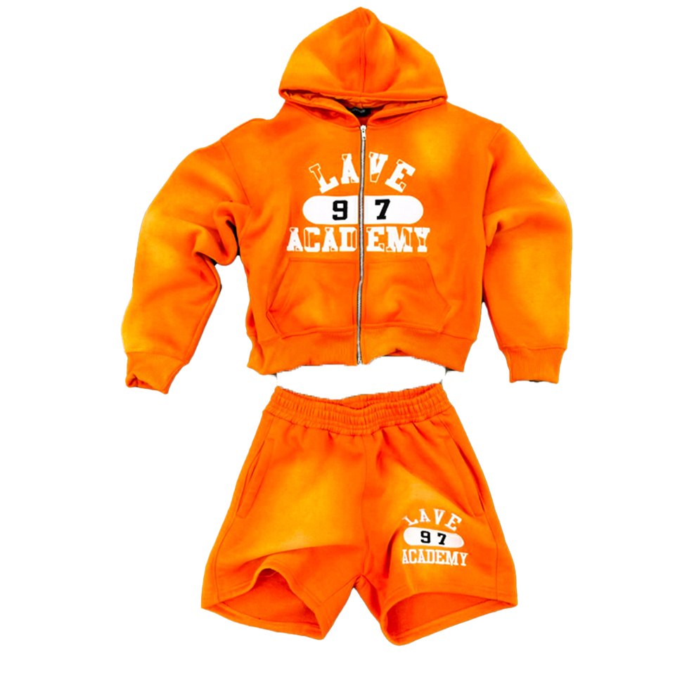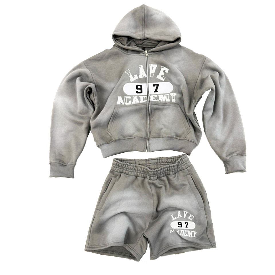 Man's Custom Streetwear Zip-up Hoodie and Shorts Set Featuring Embroidered Patches Sun-faded Acid Wash and Tracksuit Hoodies