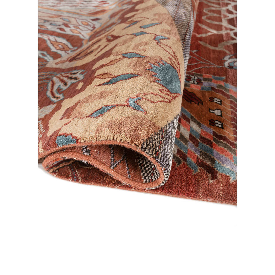 Manchaha Abstract Pattern Hand Knotted Wool & Bamboo Silk Rug Red & Orange-For Home Use Les-2770