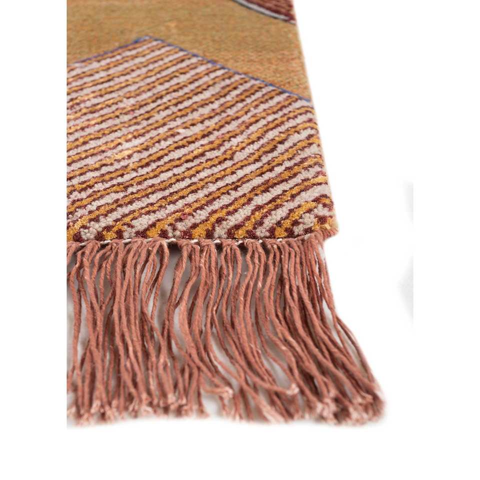 Manchaha Geometric Pattern Hand Knotted Wool & Bamboo Silk Rug Red & Orange-For Home Use Les-2358