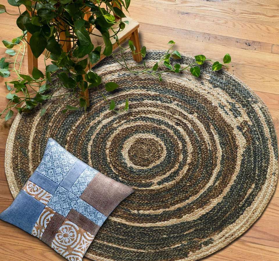 Mandala Rug in Jute Rangoli Handmade Braided Rug Beautiful Designer Jute Rug in Round 100% Natural for Home Office and Kids Boho