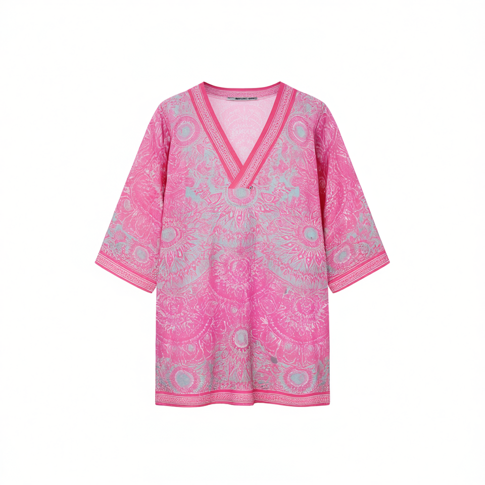 Mandala Style Mid Sleeve Beach Shirt 88x54cm V Neck Cover Up For Women Swimwear