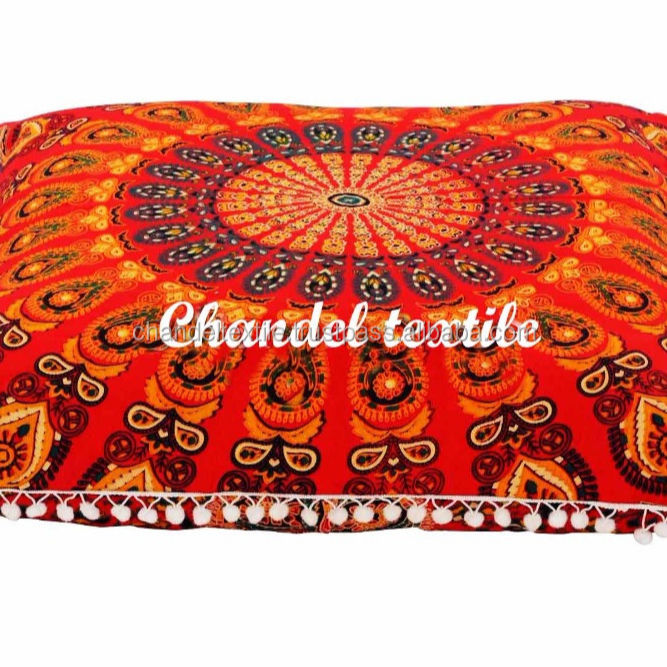 Mandala square Cushion Throw Cases Pom Pom Ethnic Decor Indian Mandala Tapestry Euro Sham Pillow 26" Large Boho Cushion Cover