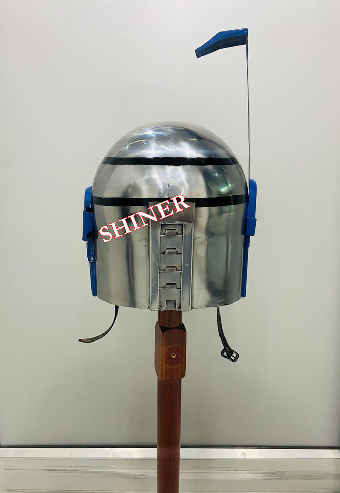 Mandalorian Steel Helmet Medieval Silver and Blue Series Premium Wearable Armor Helmet Cosplay Prop Movie 18Ga Steel Costume