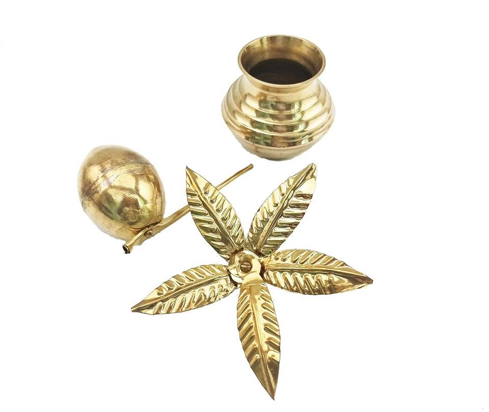 Mangal Kalash with Brass Nariyal and Leafs Diwali Pooja Metallic Coconut Mango Leaves Small Size Brass Kalash