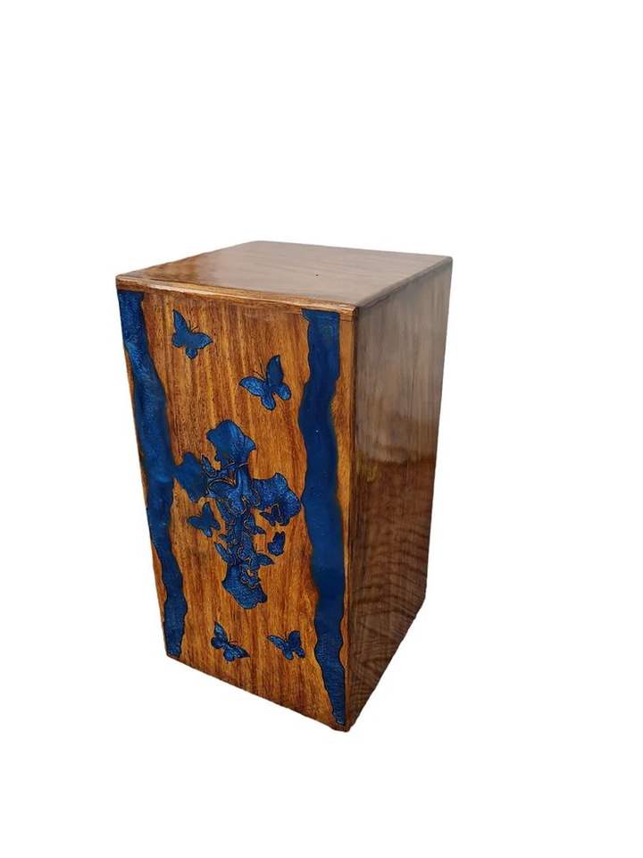 Mango Wood & Epoxy Cremation Urn Box Memorial Keepsake for Ashes Urn, For Family Urn, Cremation Funeral Box, Pet Urn Boxes.